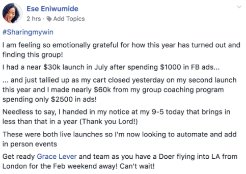 So some ladies get it right first time round because they know their market well.... and their market resonates with what they're selling and what they're saying.