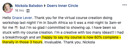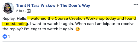 ONE TIME OFFER - Only $37 USD: Want my step-by-step workbook to get more out of our time together in the Virtual Course Creation Doing Workshop? Avoid manic note-taking and be sure you don't miss a step by following along with this printable workbook. The Doing Workbook including checklists, course creation examples, step-by-step course building instructions and more. Click YES to add this to your order now for just $37 USD.