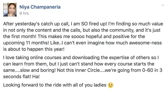 You'll be able to start as quickly as you want, and my team and I here in your corner every week for as long as you stay in The Doers Inner Circle program.